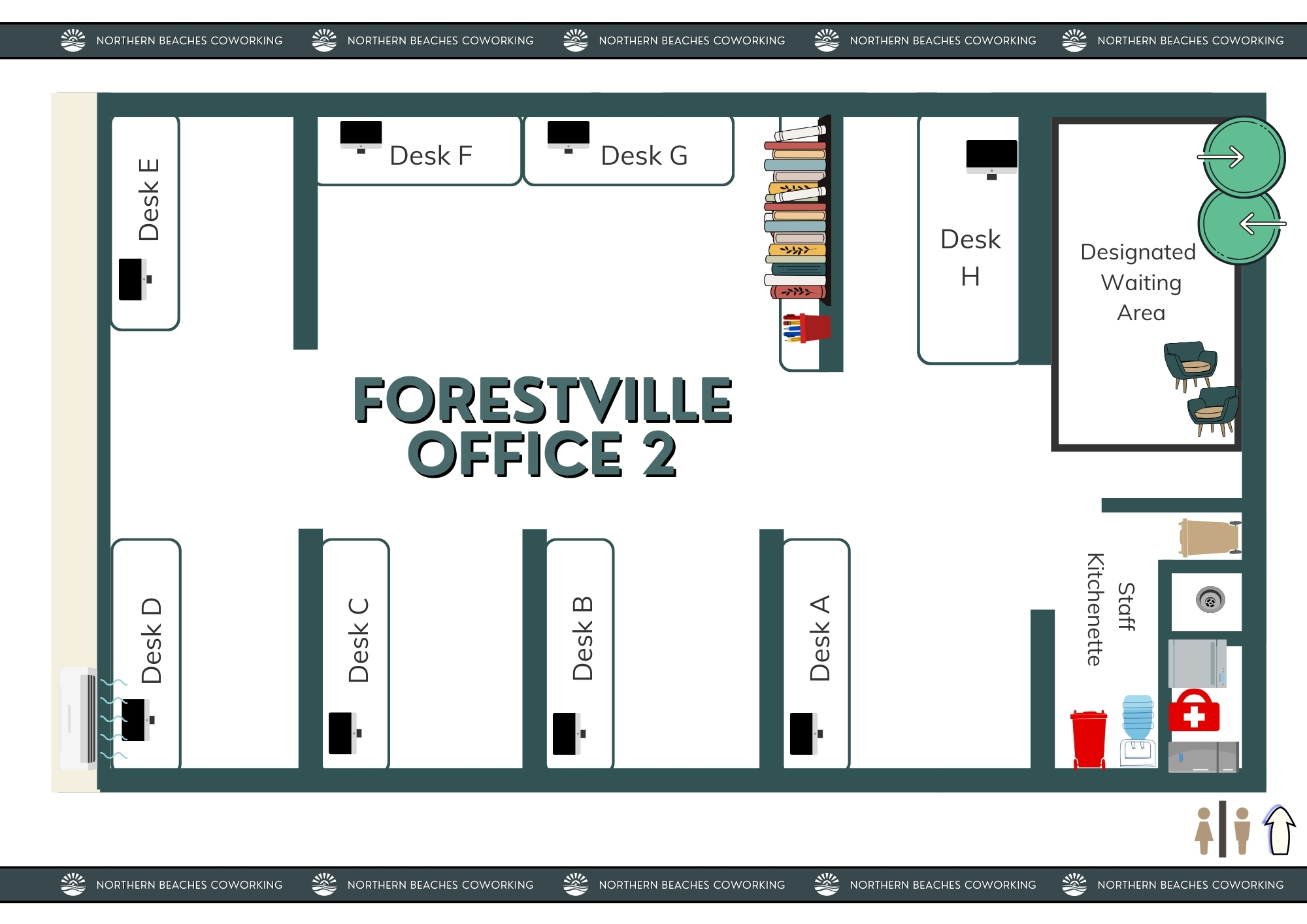 Professional coworking space in Forestville, Sydney. 8 hot desks with monitors, quiet rooms, free parking. ~$19.50/day on monthly membership.